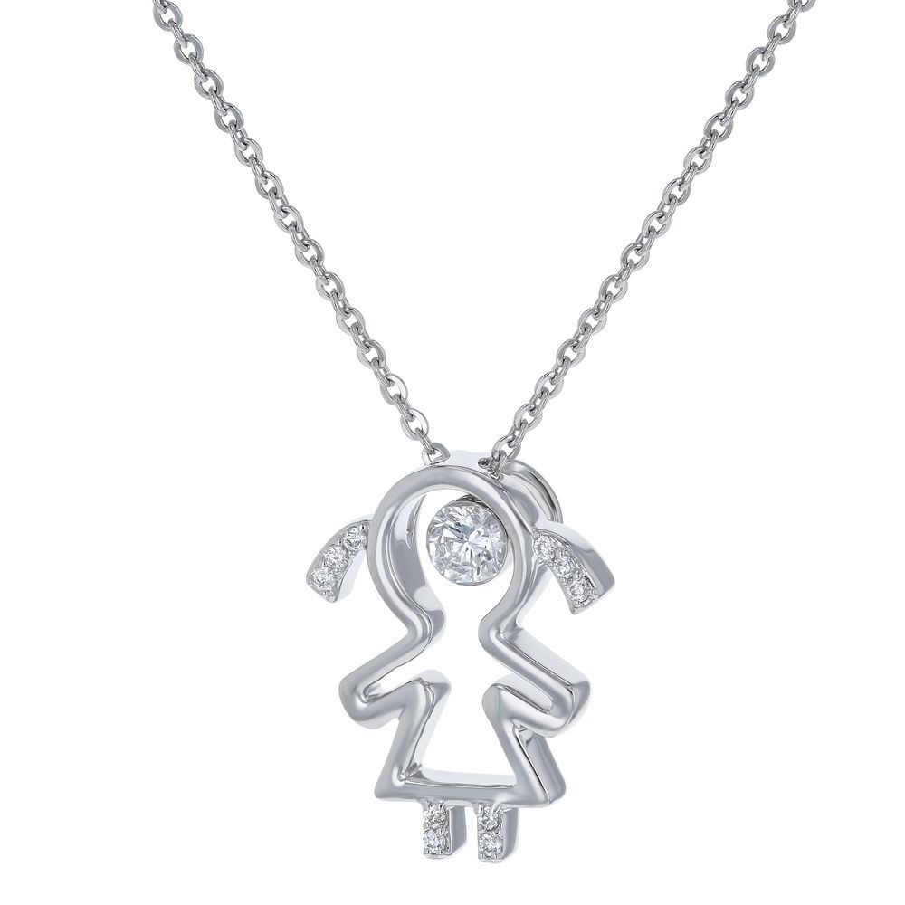14K white gold girl shape pendant. Set with 0.25 ct. round diamonds. Part of our MIRAGIO collection. Chain sold separately.
