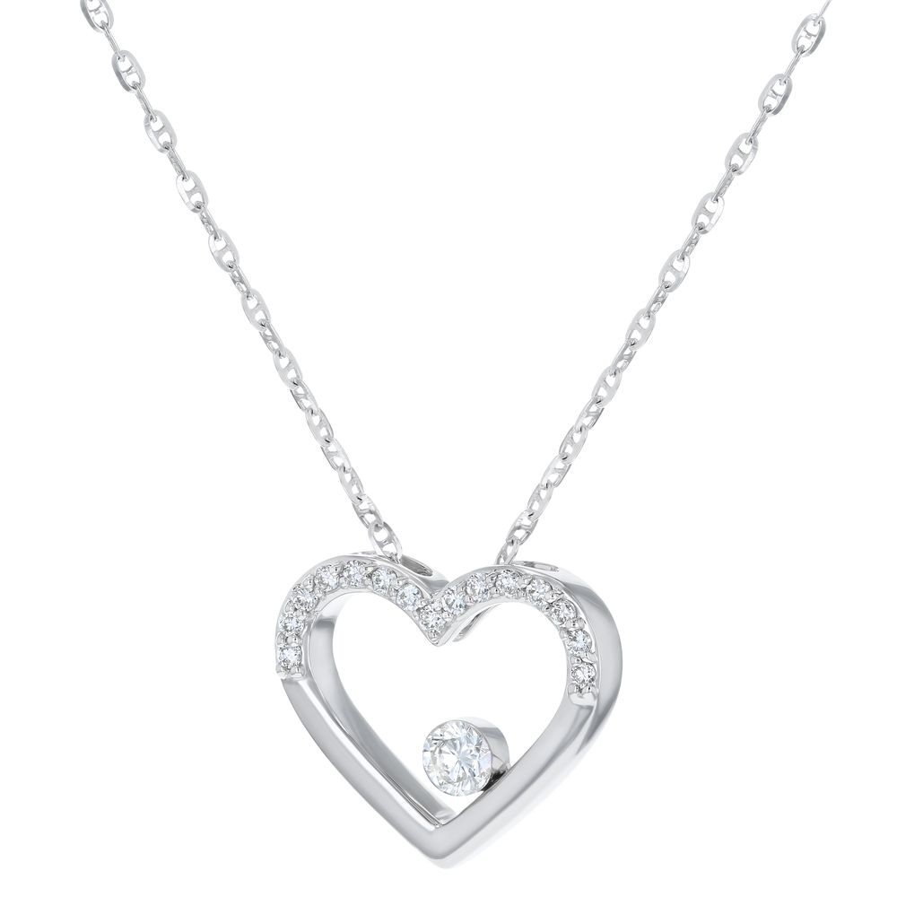 14K white gold heart shape pendant. Set with 0.25 ct. round diamonds. Part of our MIRAGIO collection. Chain sold separately.