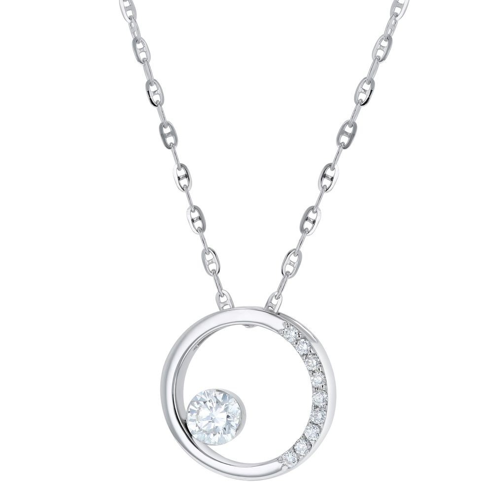14K white gold round shape pendant. Set with 0.25 ct. round diamonds. Part of our MIRAGIO collection. Chain sold separately.