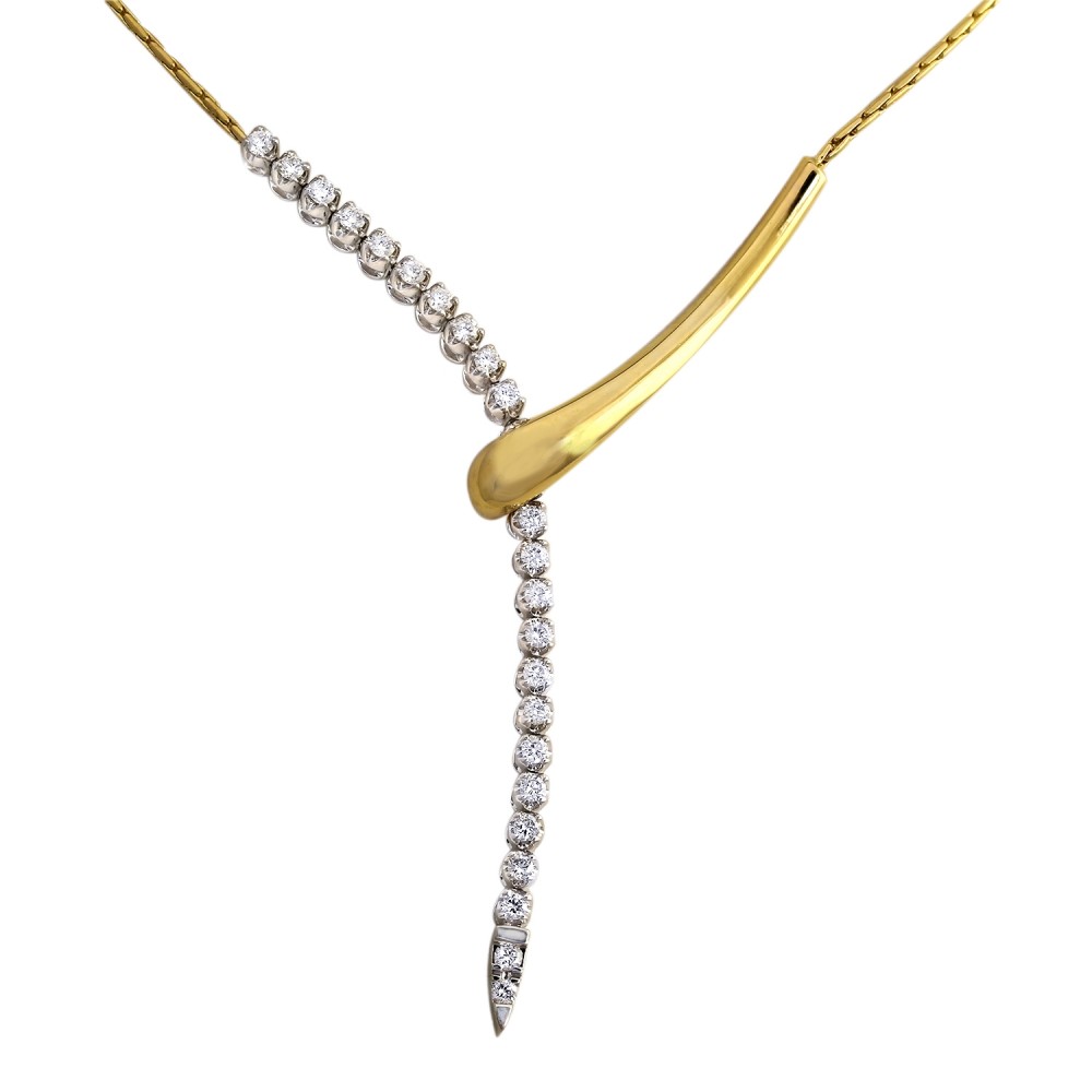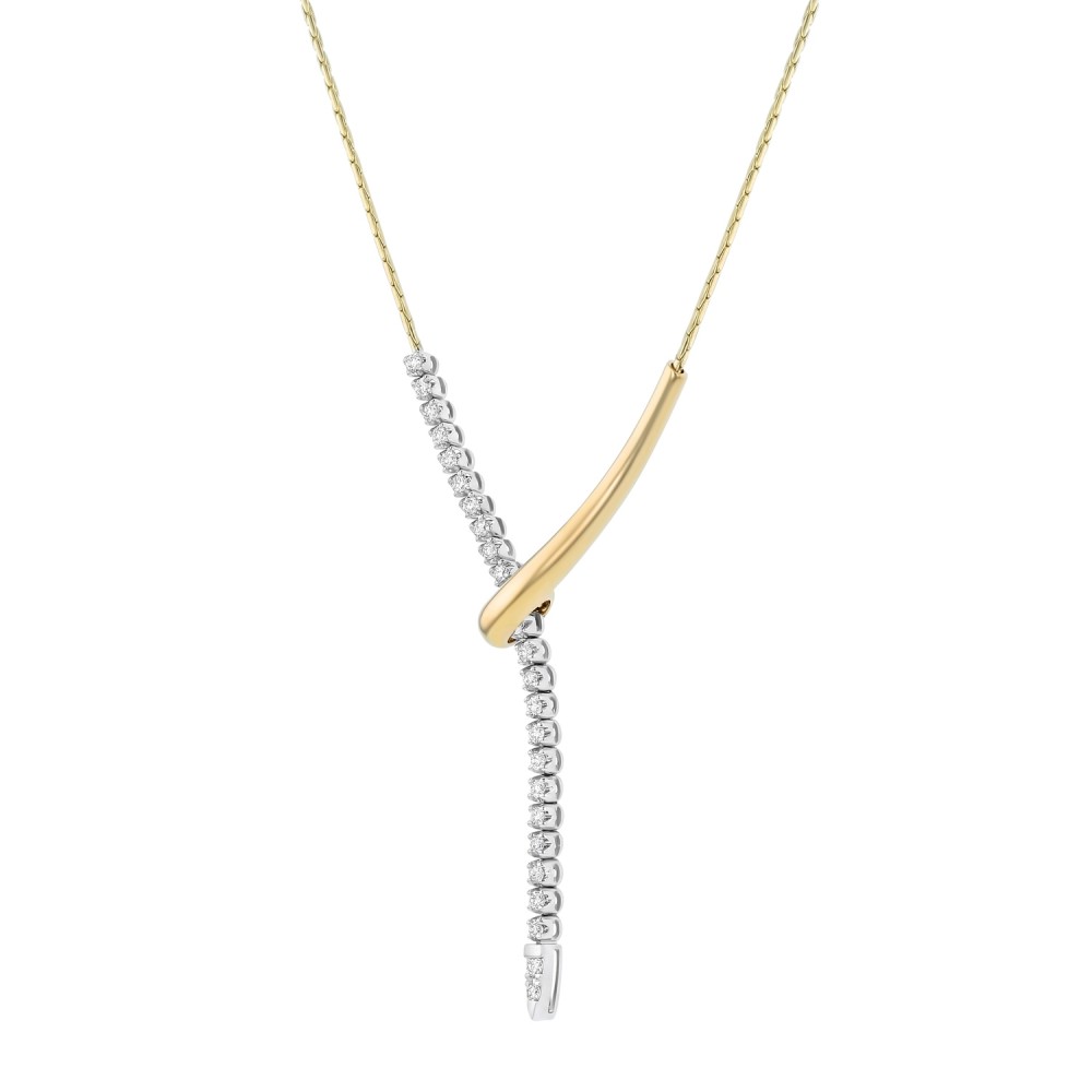 14K yellow and white gold Y design lariat necklace set with 0.50 carat round brilliant diamonds. Price includes chain.