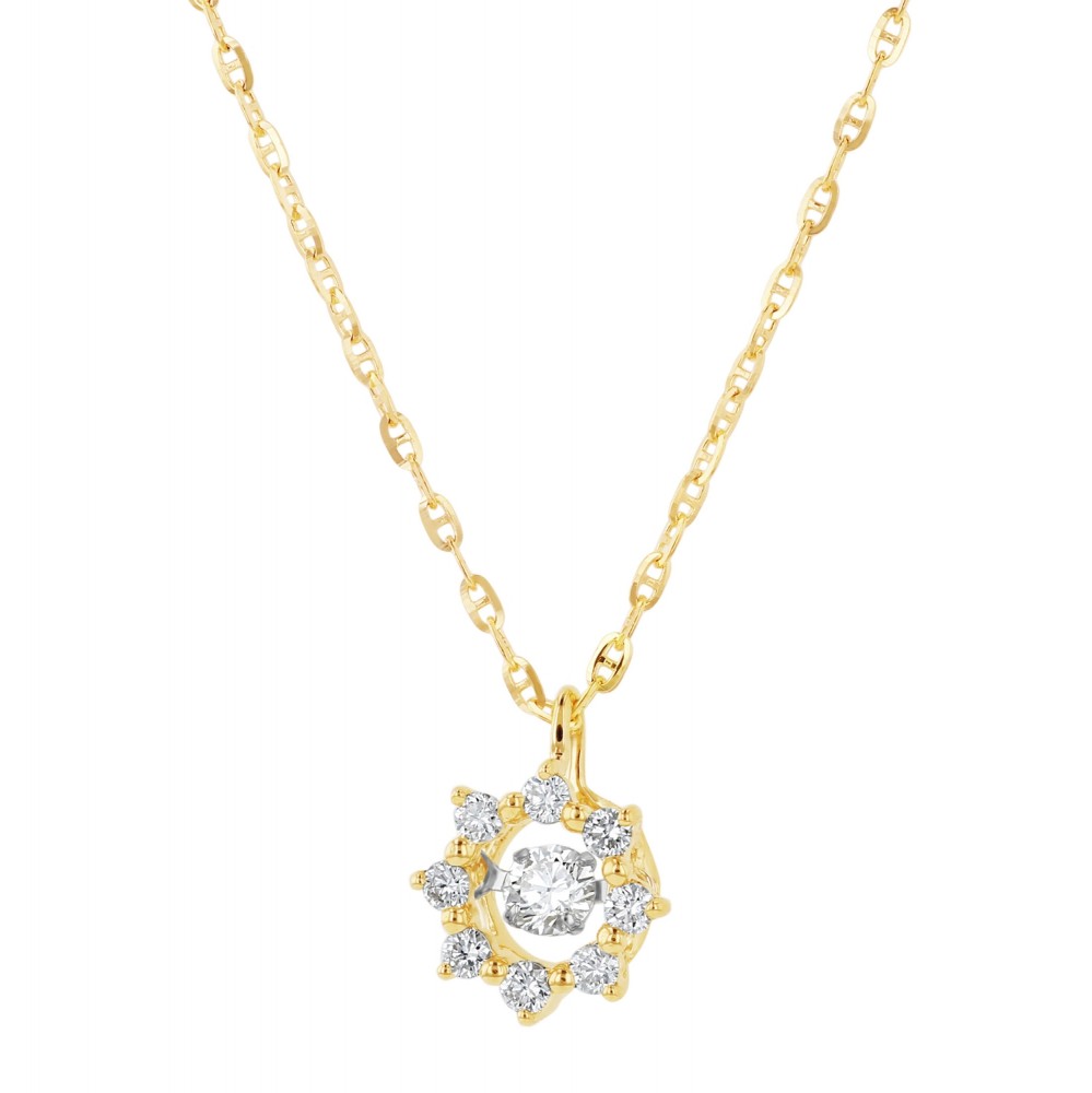 14K yellow gold star necklace set with 0.10 carat center Dancing diamond and 0.15 carat halo diamonds. Chain sold separately.