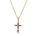 14K yellow gold cross pendant set with 0.09 carat round brilliant white diamonds and 0.17 carat natural rubies. Chain sold separately.
