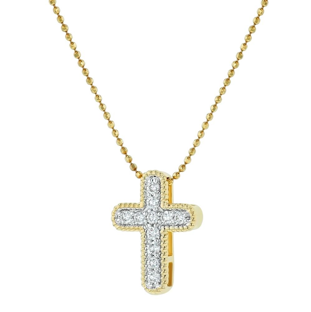 14K Yellow Gold 0.25 carat Diamonds dainty Textured Cross Pendant