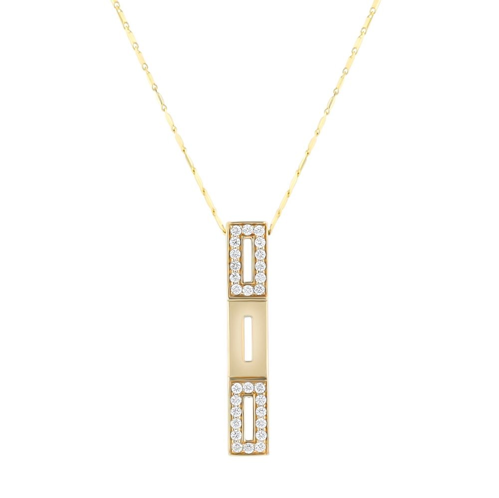 14K yellow gold geometric pendant set with 0.33 carat round brilliant diamonds in rectangles design. Chain sold separately.