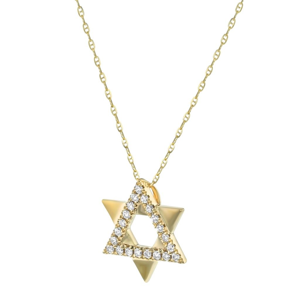 14K yellow gold Star of David pendant set with 0.33 carat round brilliant diamonds. Chain sold separately.