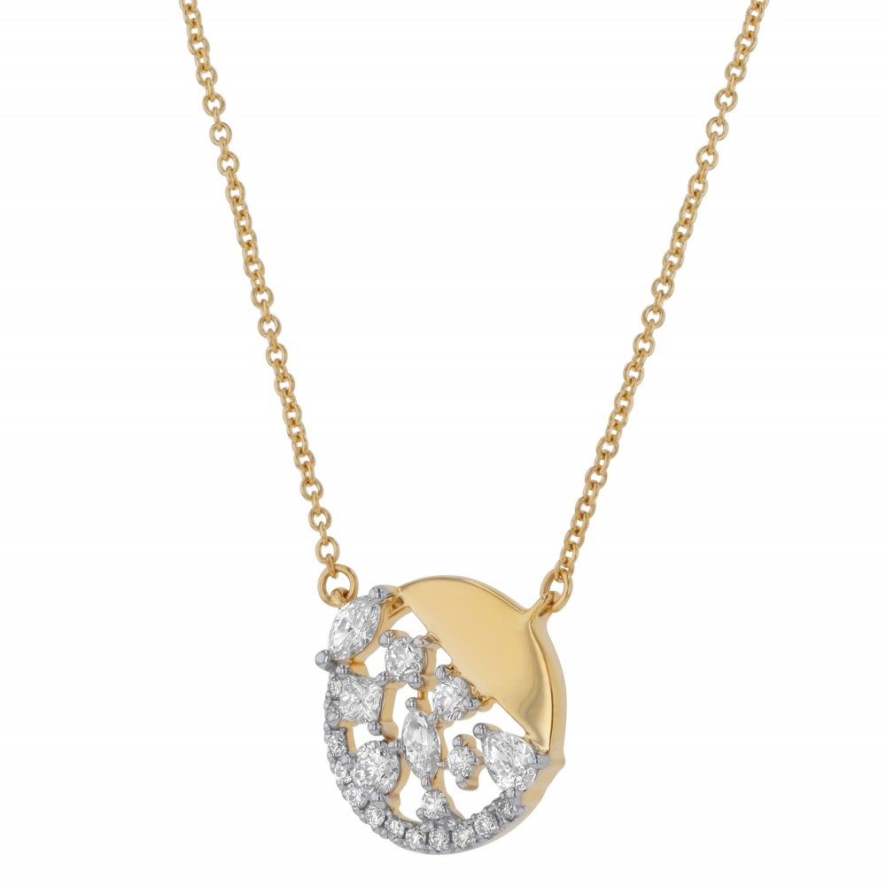 14K yellow gold round necklace set with 0.38 carat princess, marquise and round brilliant diamonds. Cable chain included.