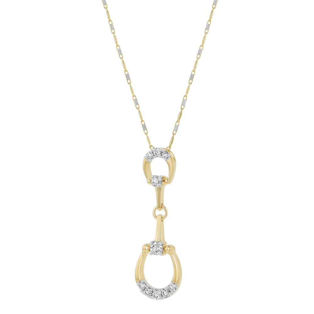 14K yellow gold horseshoe drop pendant set with 0.45 ct. round brilliant diamonds. Chain sold separately.