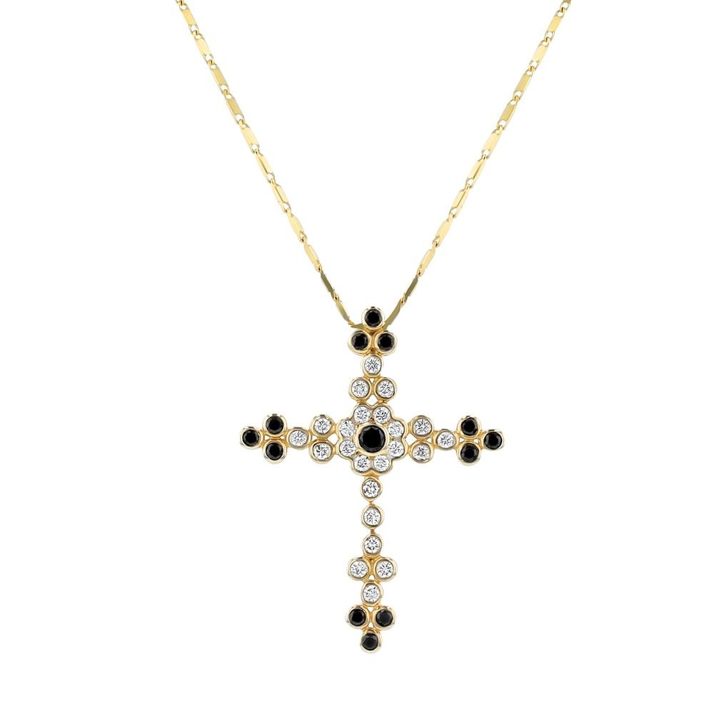14K yellow gold cross pendant set with 0.30 carat white and 0.20 carat black round brilliant diamonds. Chain sold separately.