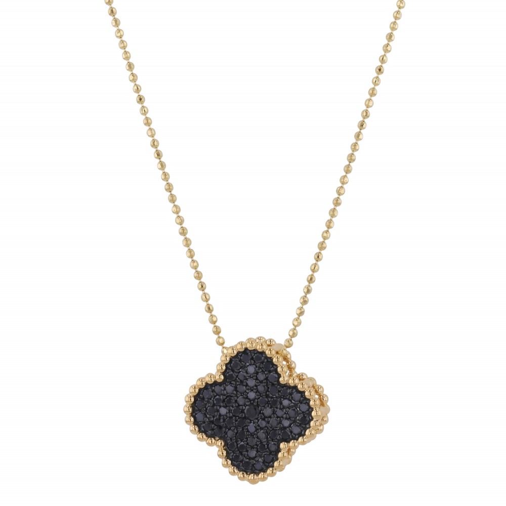 14K yellow gold clover pendant set with 0.50 carat round black diamonds. Chain sold separately.