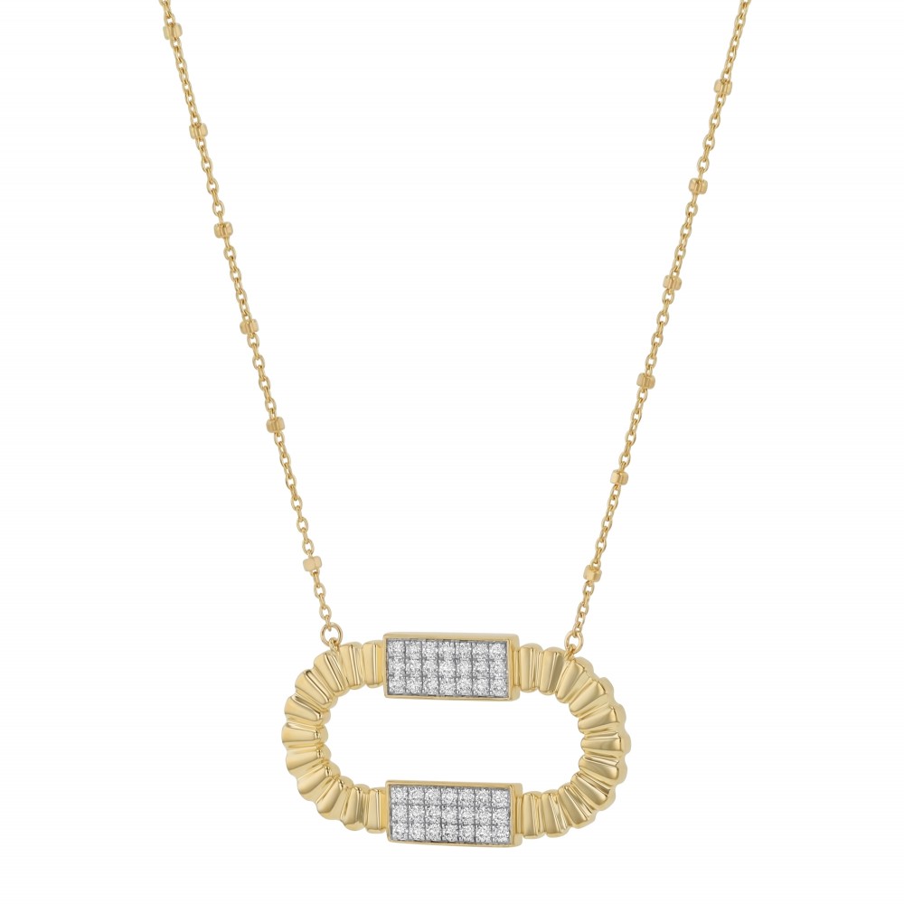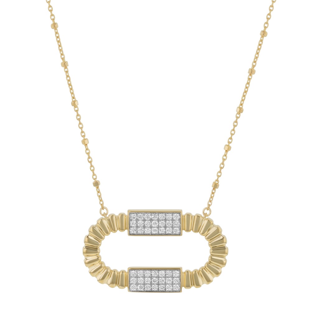 14K yellow gold corrugated oval necklace set with 0.50 ct. round brilliant diamonds. Chain included.