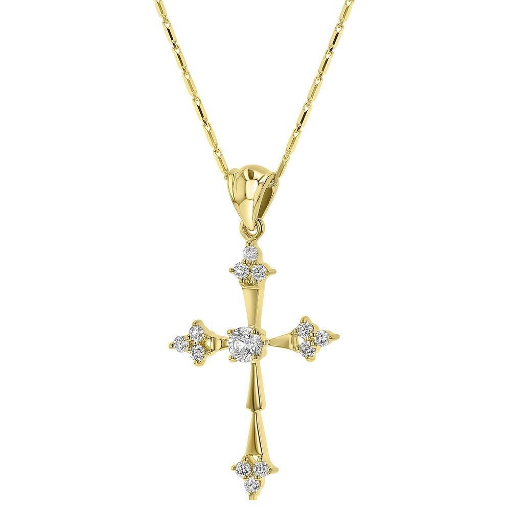 14K yellow gold cross pendant set with 0.50 carat round brilliant diamonds. Chain sold separately.