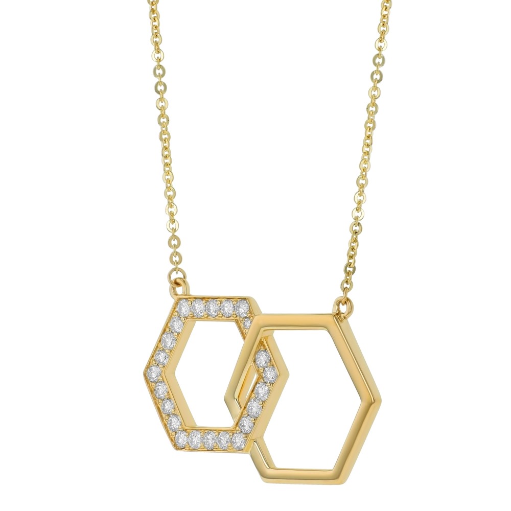 14K yellow gold entwined hexagons necklace set with 0.50 carat round brilliant diamonds on cable chain. Price includes chain.