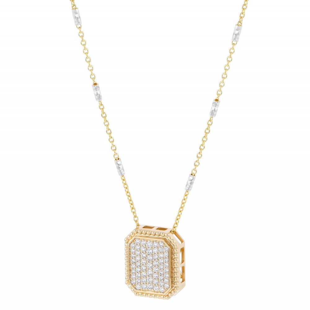 14K yellow gold octagon pendant pave set with 0.50 carat round brilliant diamonds in milgraing detailing and polished finish. Chain sold separately.