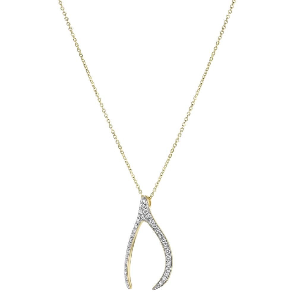 14K yellow gold WISHBONE necklace set with 0.50 carat round brilliant diamonds and detailed with white rhodium finish. Chain sold separately.