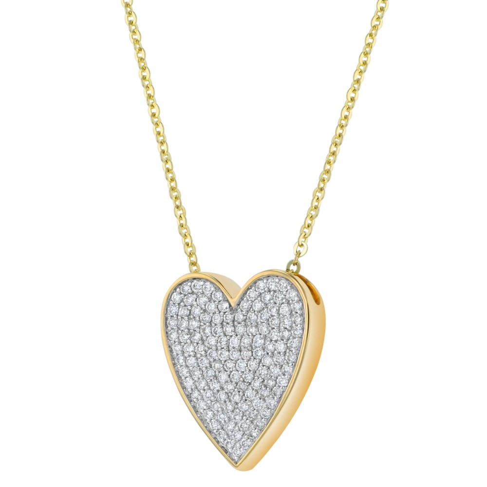 14K yellow gold heart pendant pave set with 0.50 carat round brilliant diamonds in high polish finish. Chain sold separately.