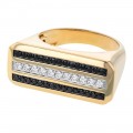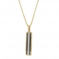 14K yellow gold elongated rectangle shape pendant set with 0.40 carat white diamonds and 0.35 carat black diamonds in high polish finish and detailed with black and white rhodium. Chain sold separately.