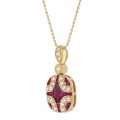 14K yellow gold art deco necklace set with 0.20 carat round brilliant diamonds and 0.80 carat oval and round red rubies. Rubies are natural, not treated. Chain sold separately.