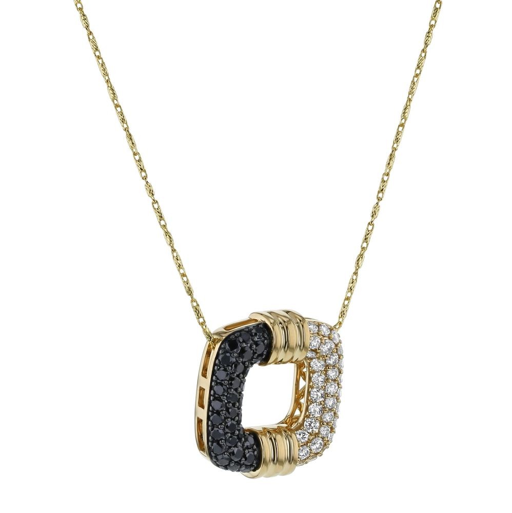 14K yellow gold cushion shape pendant set with 0.60 carat white and 0.65 carat black round diamonds, total 1.25 carat. Chain sold separately.