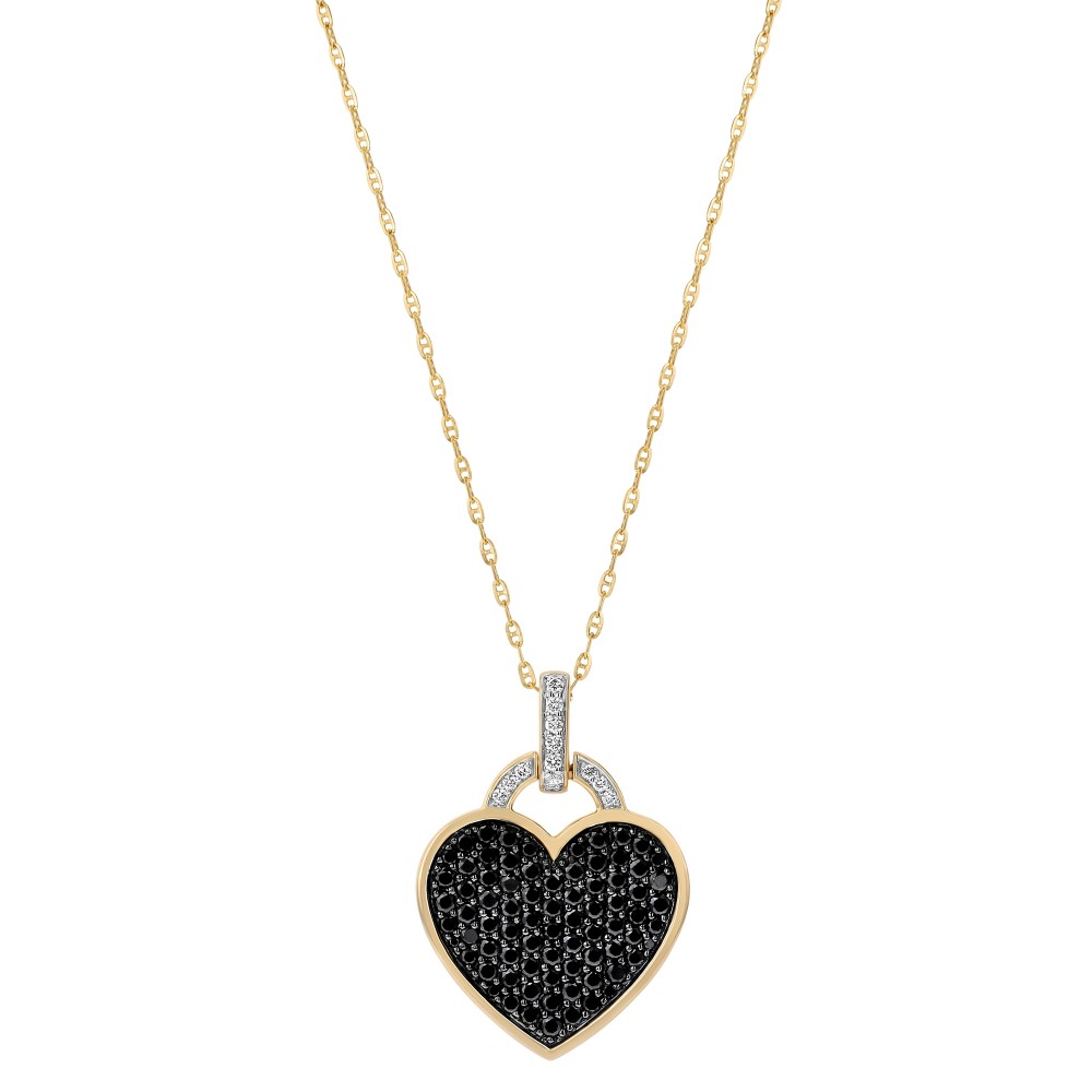 14K yellow gold heart shape pendant set with 0.08 carat white and 1.17 carat black round diamonds, total 1.25 carat. Chain sold separately.
