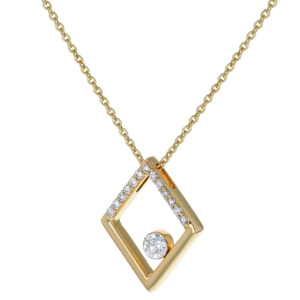14K yellow gold rhombus shape pendant. Set with 0.30 ct. round diamonds. Part of our MIRAGIO collection. Chain sold separately.