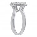 14K white gold round halo ring set with 1.0 carat of fancy cut princess and round brilliant diamonds.