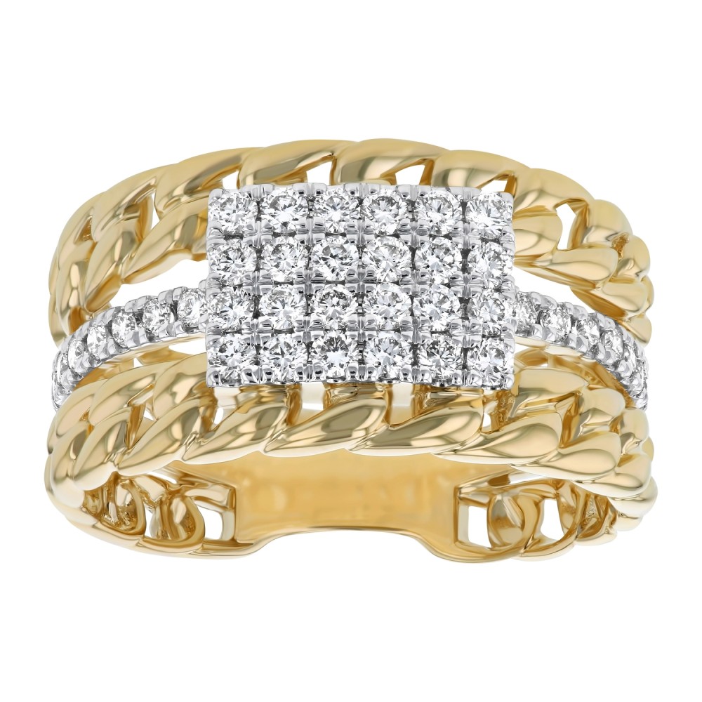 14K yellow gold wide link pave ring set with 0.50 carat round brilliant diamonds and high polish finish.