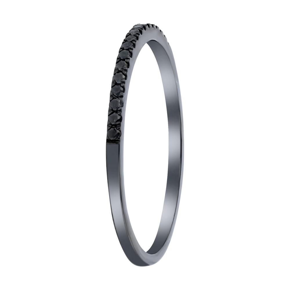 14K black rhodium plated white gold semi eternity band ring set with 0.08 ct. round black diamonds.