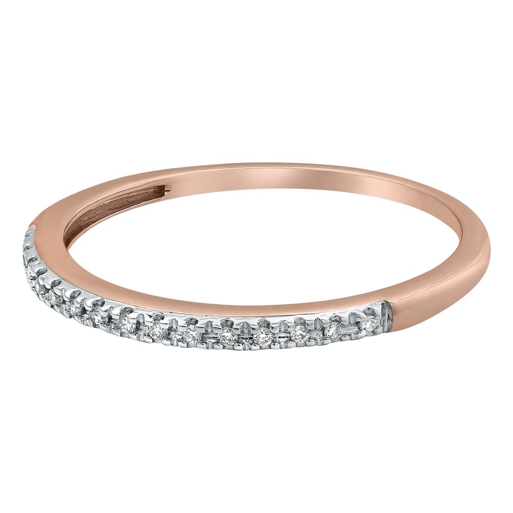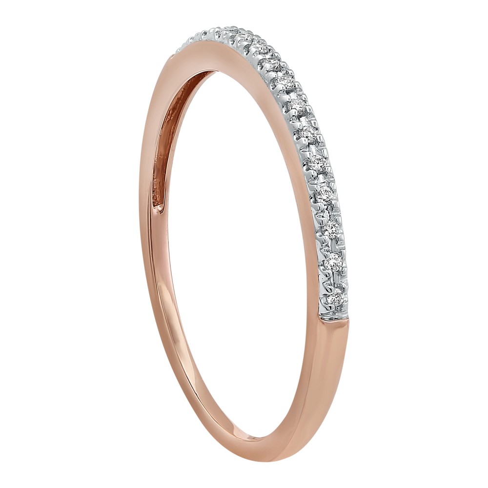 14K rose gold semi eternity band ring set with 0.06 ct. white brilliant diamonds.