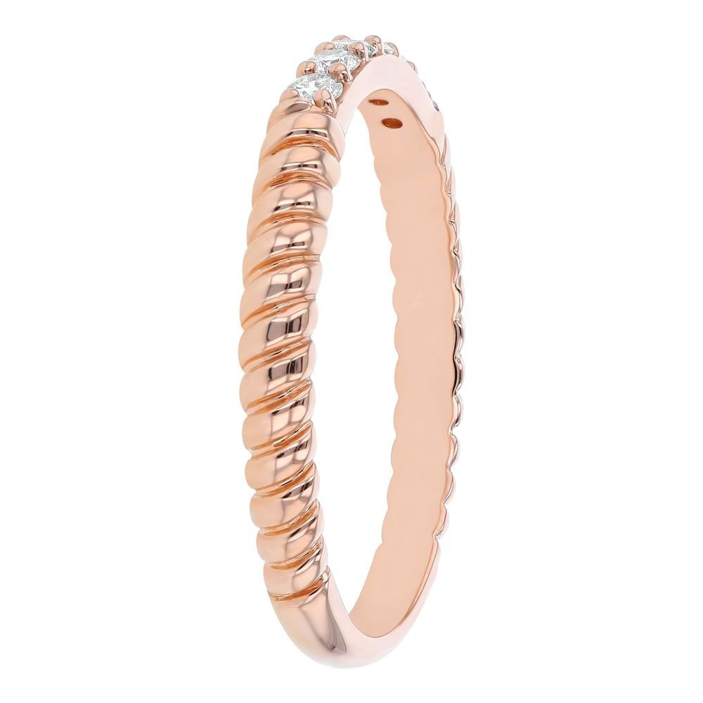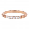 14K rose gold semi-eternity clam shell band ring set with 0.16 ct. round diamonds.