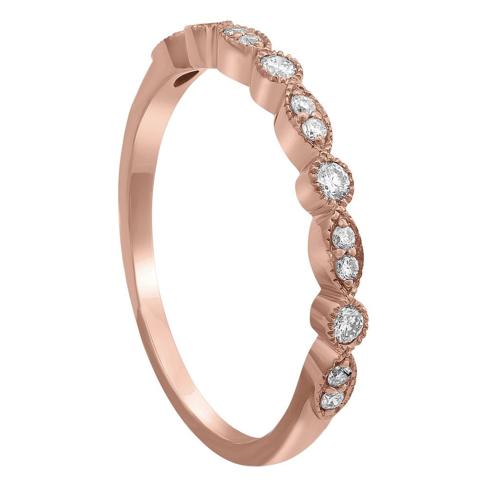 14K rose gold semi-eternity vintage inspired art deco band ring set with 0.18 ct. round diamonds.