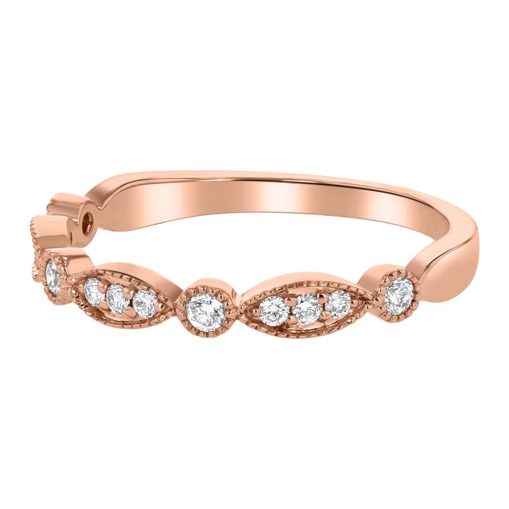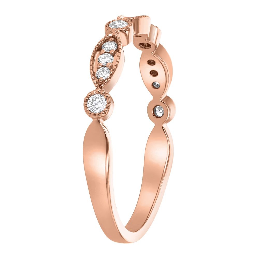 14K rose gold semi-eternity vintage inspired art deco band ring set with 0.19 ct. round diamonds.