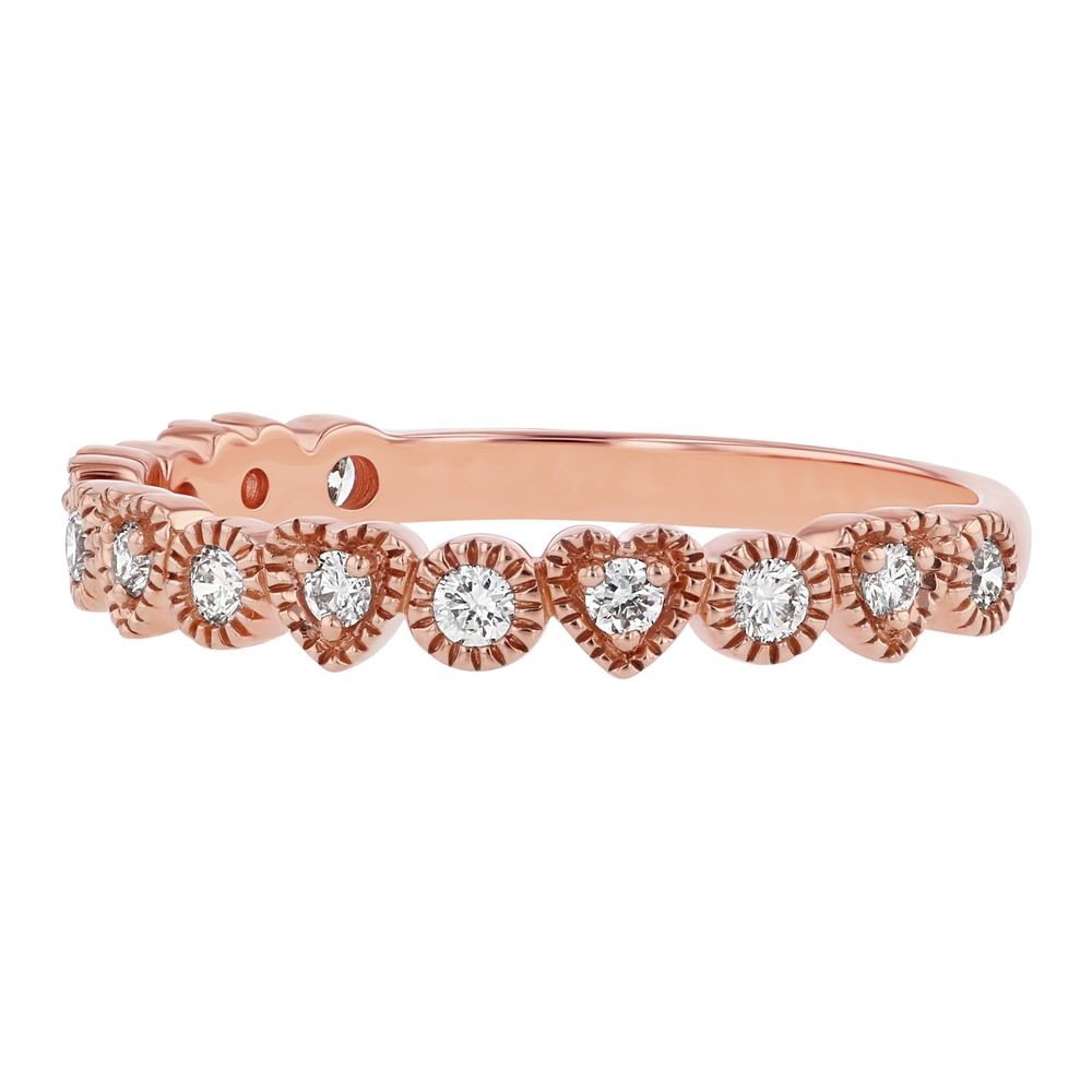 14K rose gold semi-eternity vintage inspired heart band ring set with 0.25 ct. round diamonds.