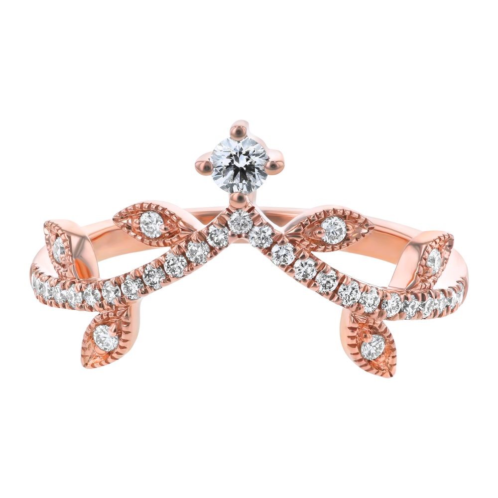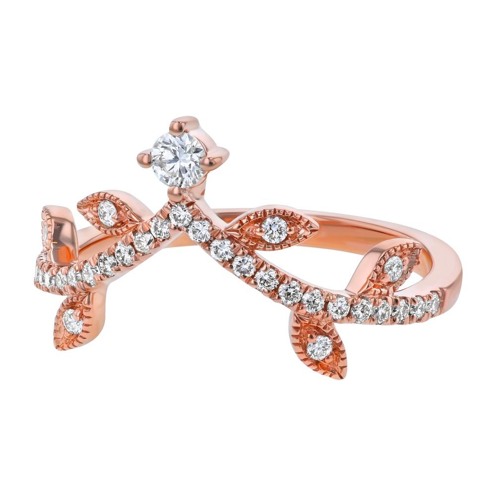 14K rose gold ring set with 0.30 ct. round diamonds in floral design. Part of our Crown Rings collection.