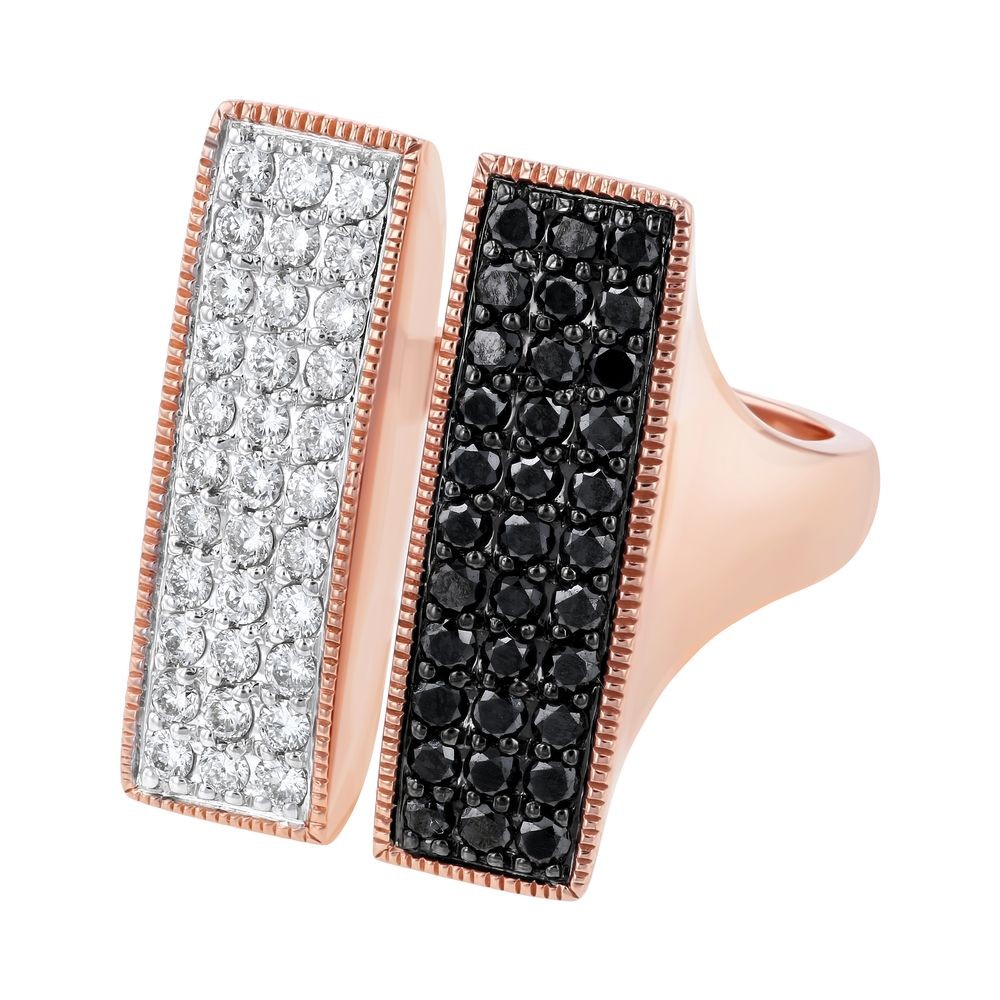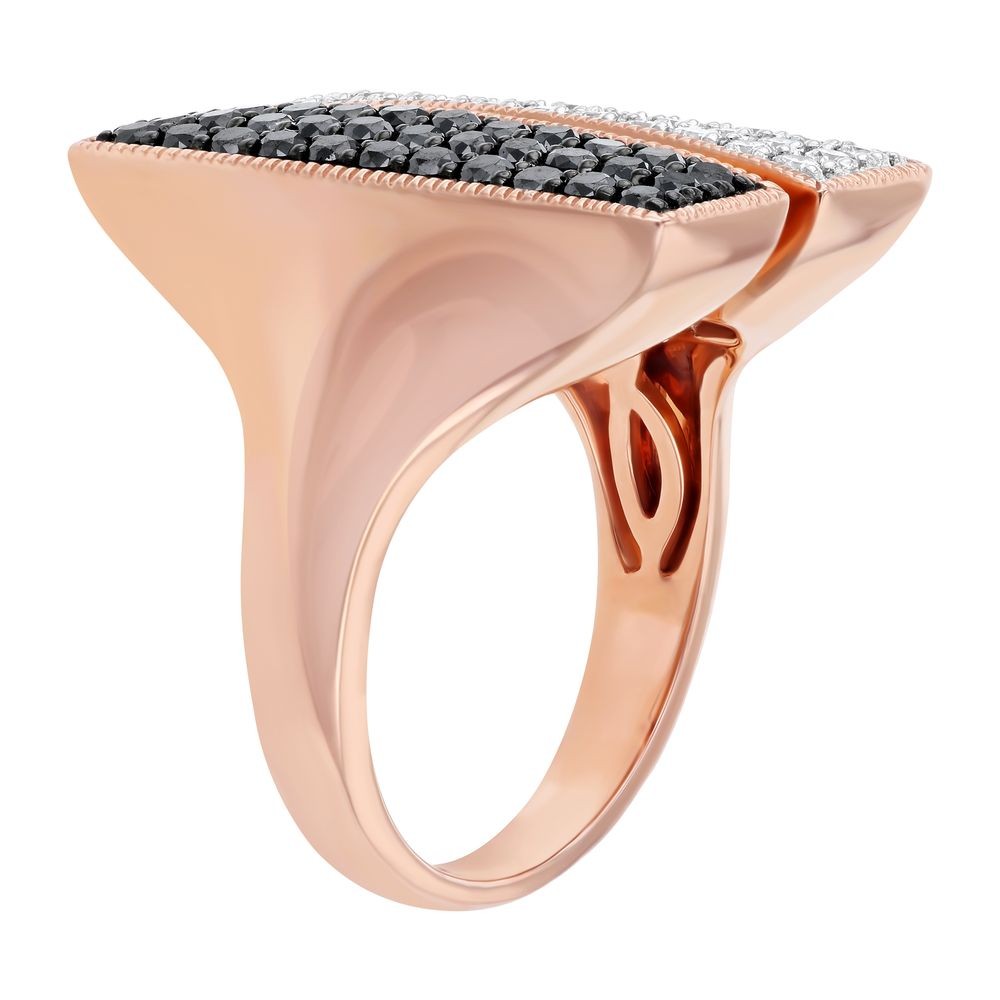 14K Rose Gold 1.2 carats Black and White Diamonds Geometric Split Rectangle Ring