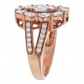 14K rose gold oval shape ring set with 1.85 carats of fancy cut marquise, princess and round brilliant diamonds.