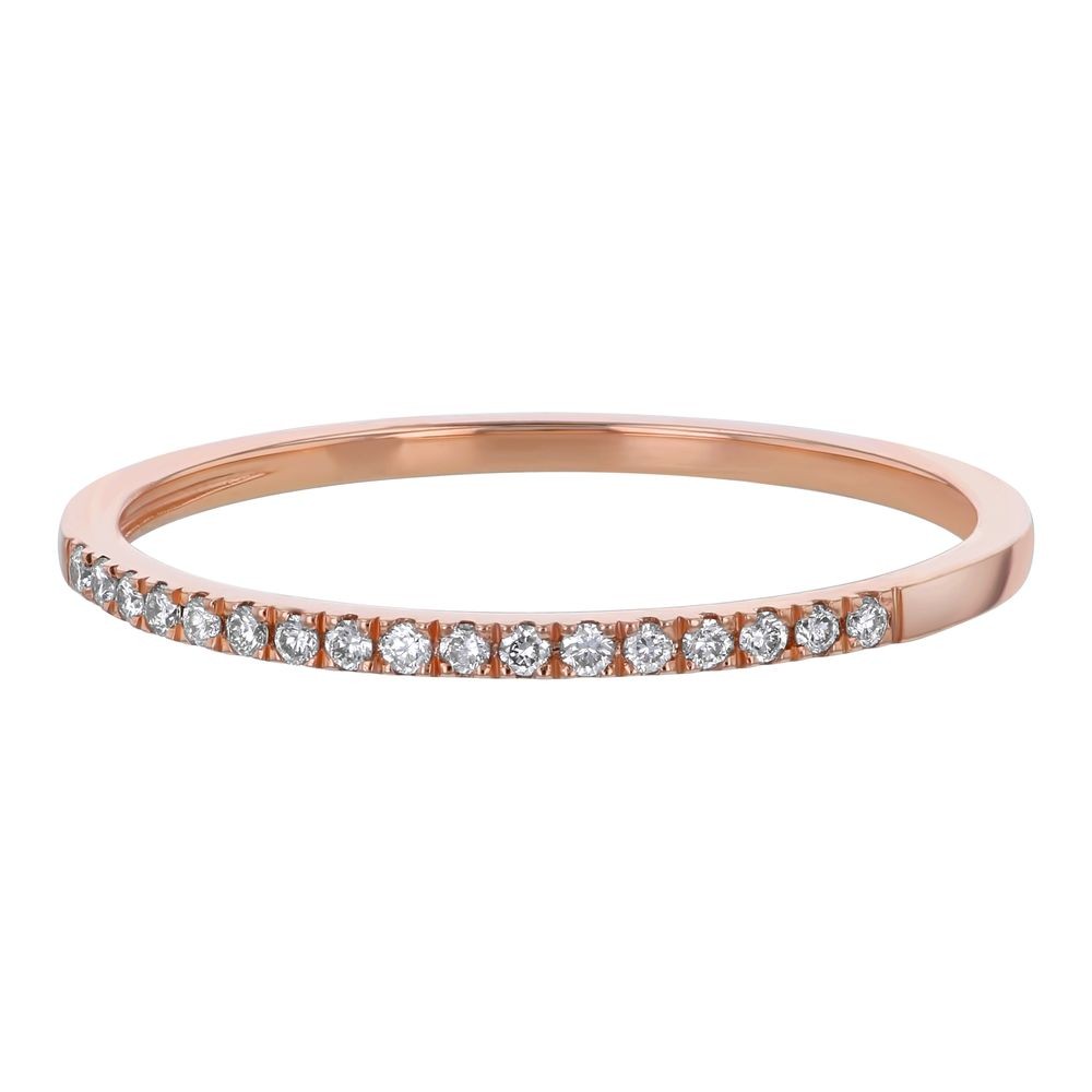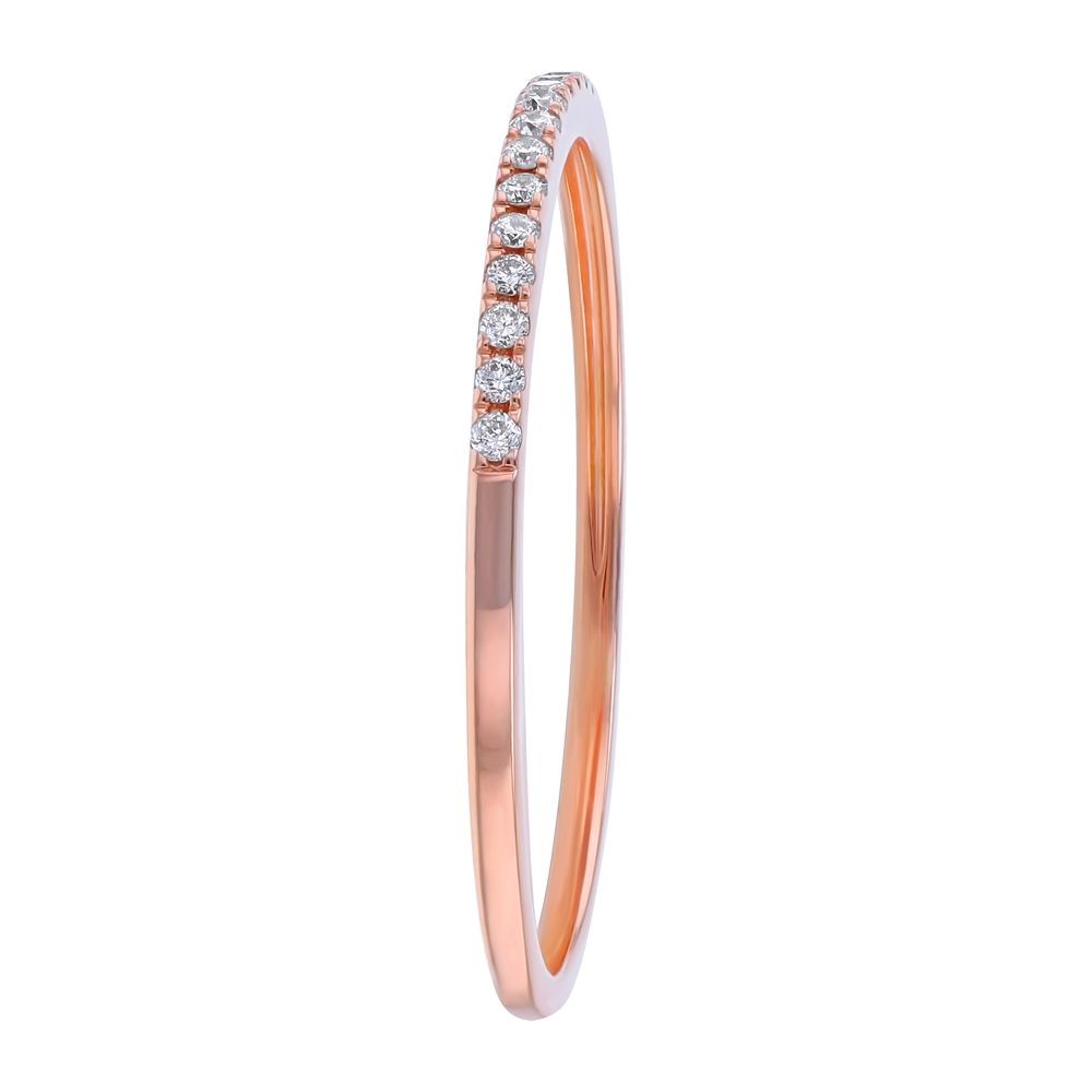 14K rose gold semi-eternity dainty and classic band ring with 0.08 ct. round diamonds.