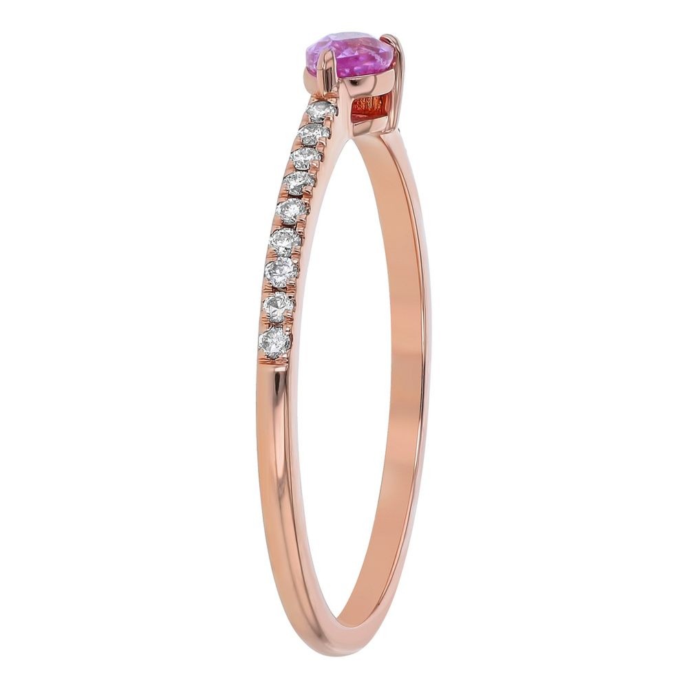 14K rose gold band ring set with 0.30 ct. pear shape pink sapphire and 0.10 ct. round brilliant diamonds.