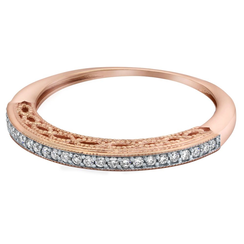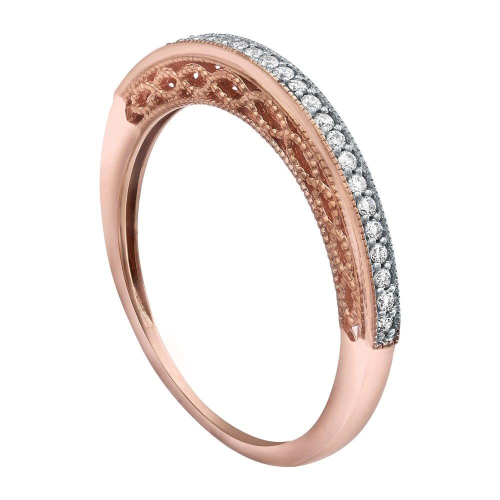 14K rose gold semi-eternity vintage inspired band ring set with 0.12 ct. round diamonds.