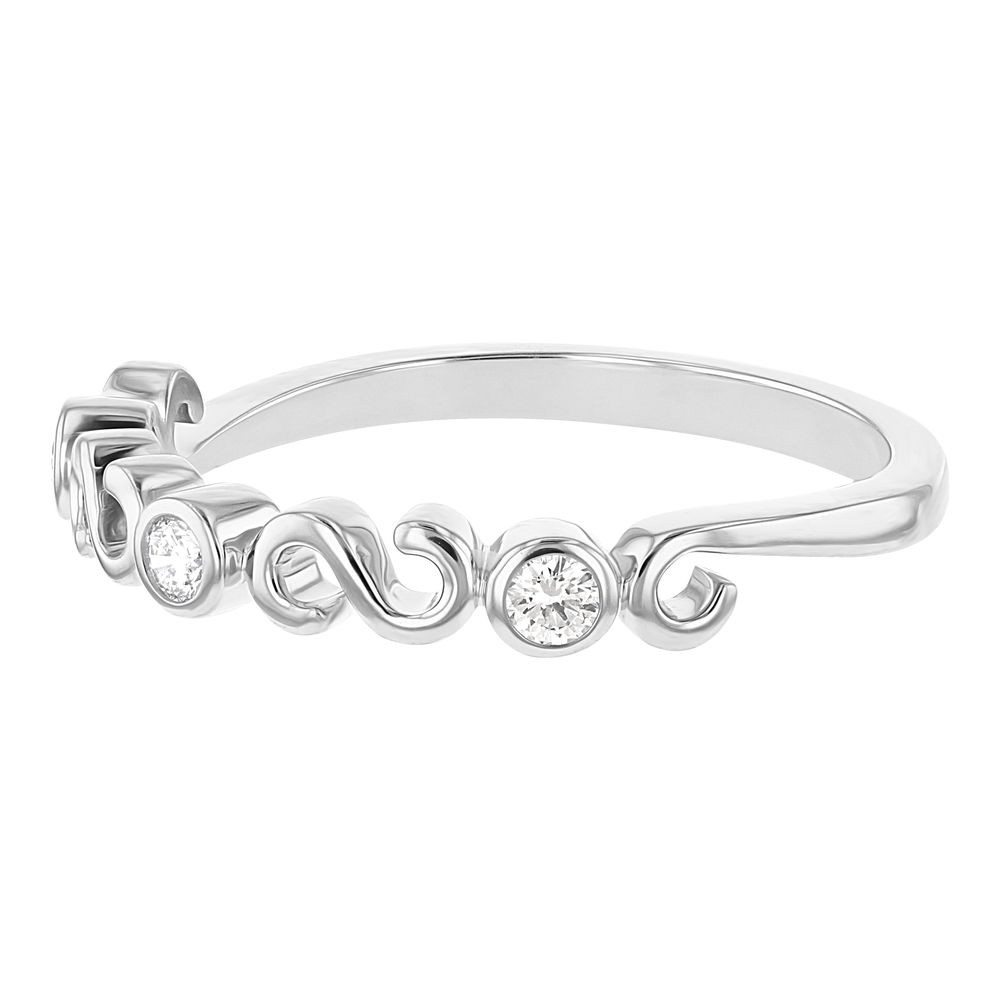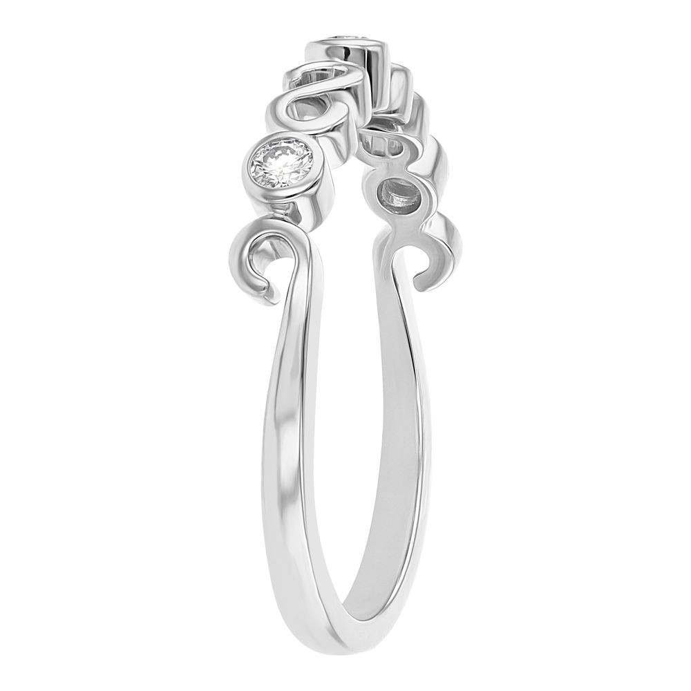 14K white gold semi-eternity swirl band ring set with 0.12 ct. round diamonds.