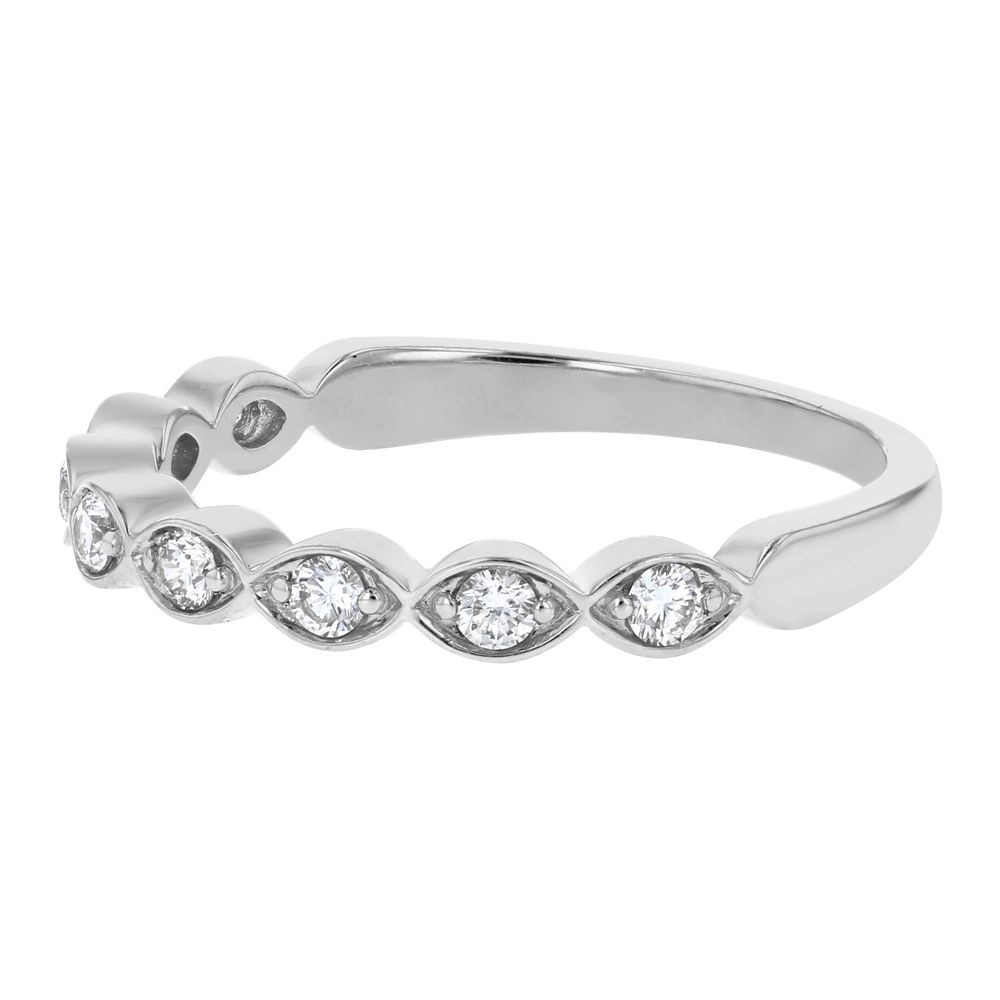 14K white gold semi-eternity art deco inspired band ring with 0.25 ct. round diamonds.