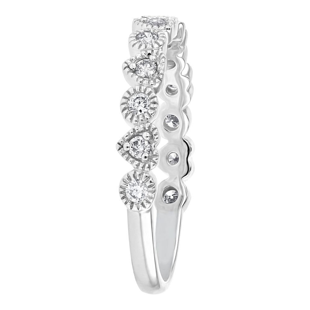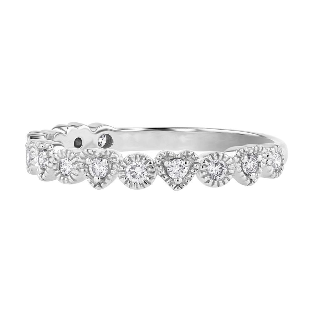 14K white gold semi-eternity vintage inspired heart band ring set with 0.25 ct. round diamonds.