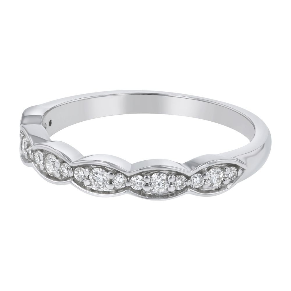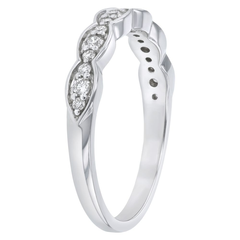 14K white gold semi-eternity sculpted band ring set with 0.25 ct. round diamonds.