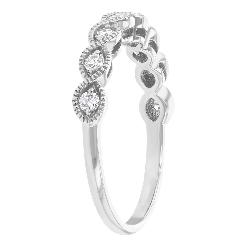 14K white gold semi eternity vintage band ring set with 0.25 ct. round brilliant diamonds and vintage polish finish.