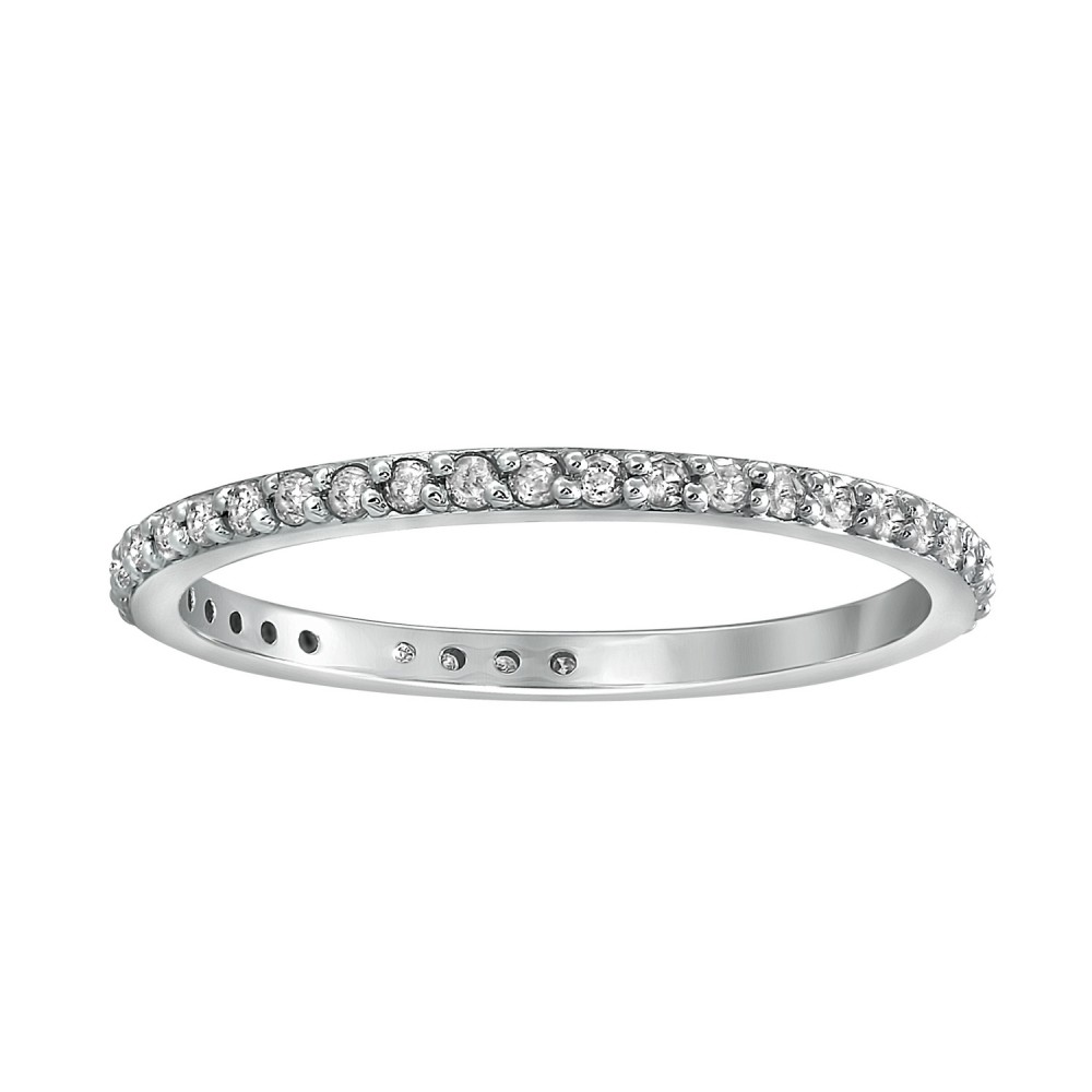 14K white gold eternity band ring prong set with 0.33 ct. round brilliant diamonds around the ring perimeter.