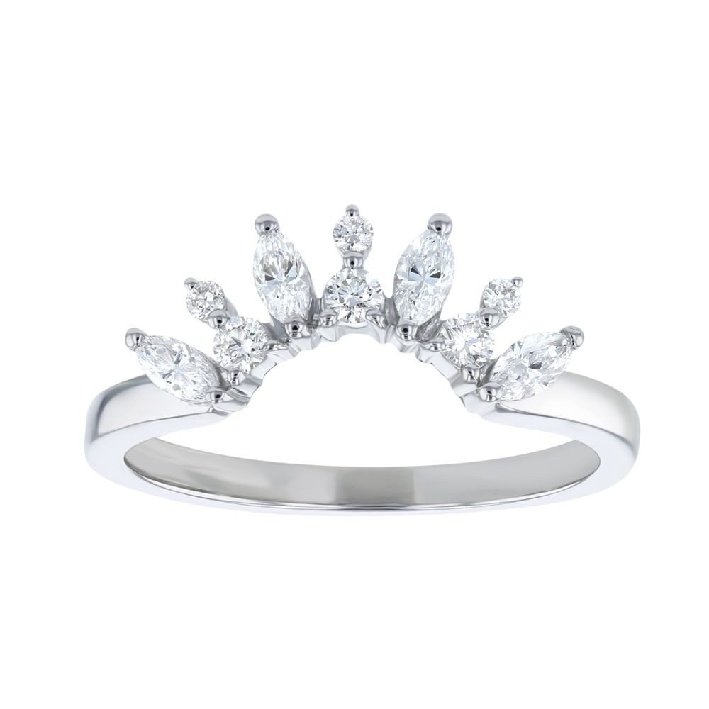 14K white gold ring set with 0.40 ct. marquise and round diamonds in tiara design. Excellent match to modern engagement rings. Part of our Crown Rings collection.