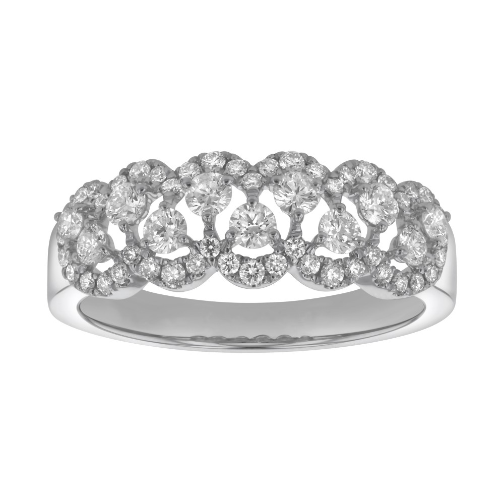 14K white gold bubbles fashion ring set with 0.75 carat round brilliant diamonds and high polish finish.