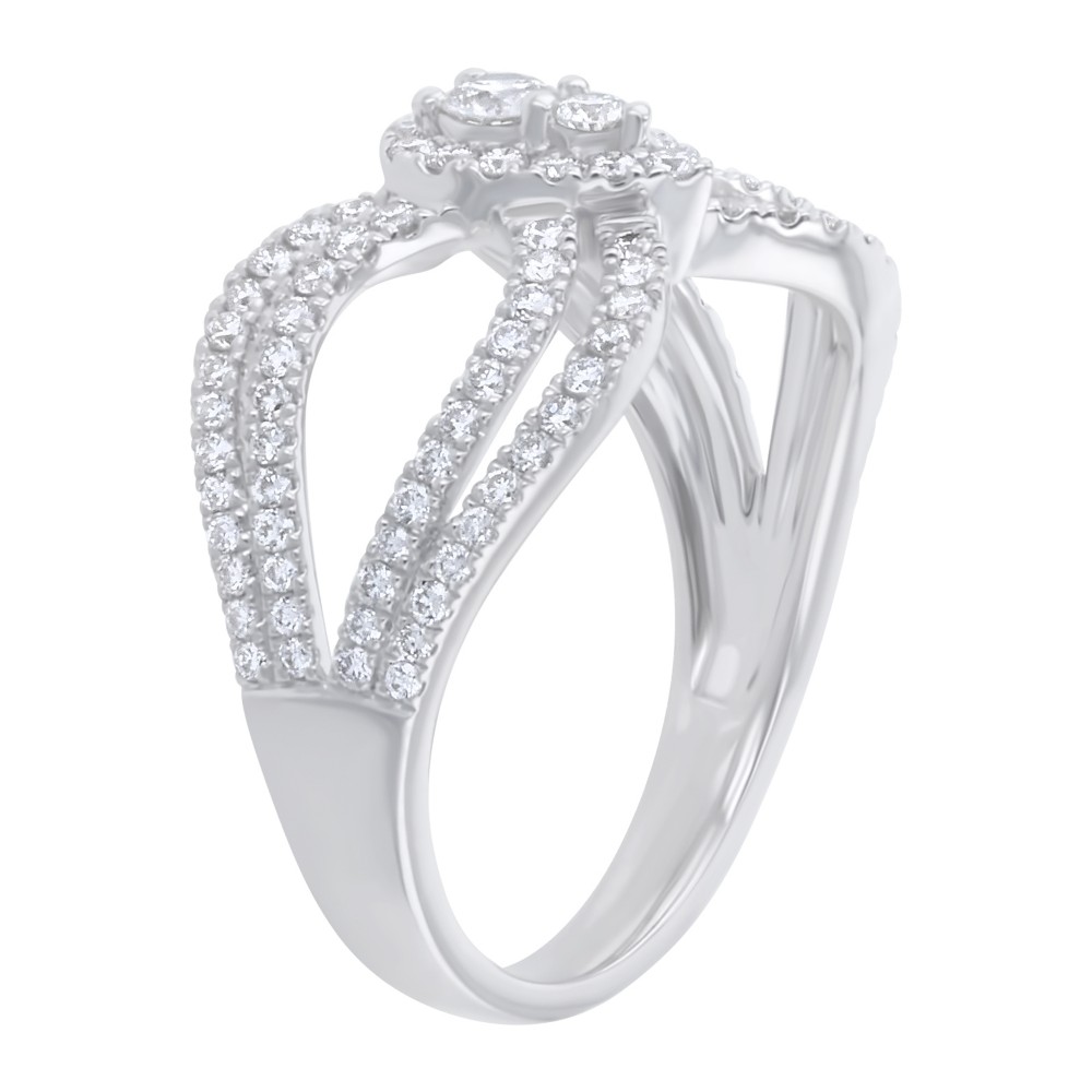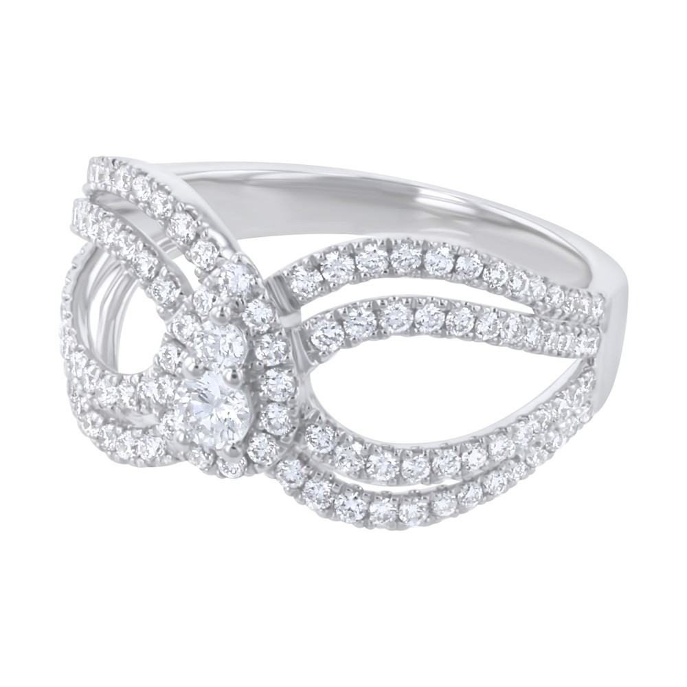 14K white gold tear drop ring set with 0.80 ct. round diamonds and polished finish.