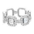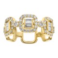 14K white gold semi eternity wide band ring set with 1.00 ct. baguette and round brilliant white diamonds and high polish finish.
