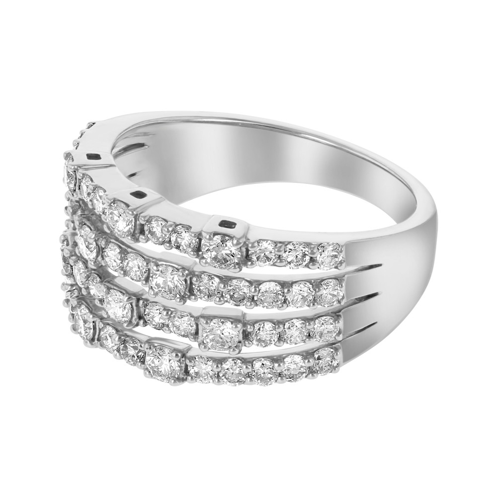 14K white gold multi row fashion ring set with 1.35 carat round brilliant diamonds and high polish finish.