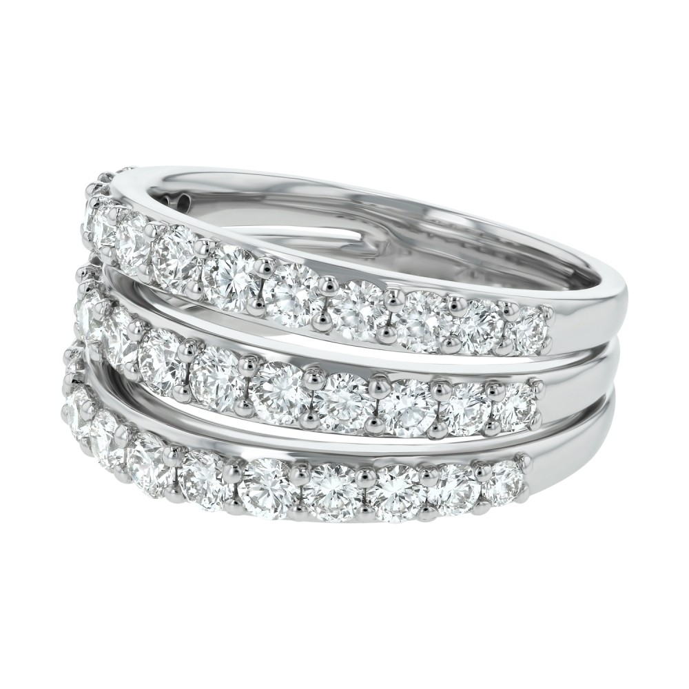14K white gold multi row fashion ring set with 2.00 carat round brilliant diamonds and high polish finish.